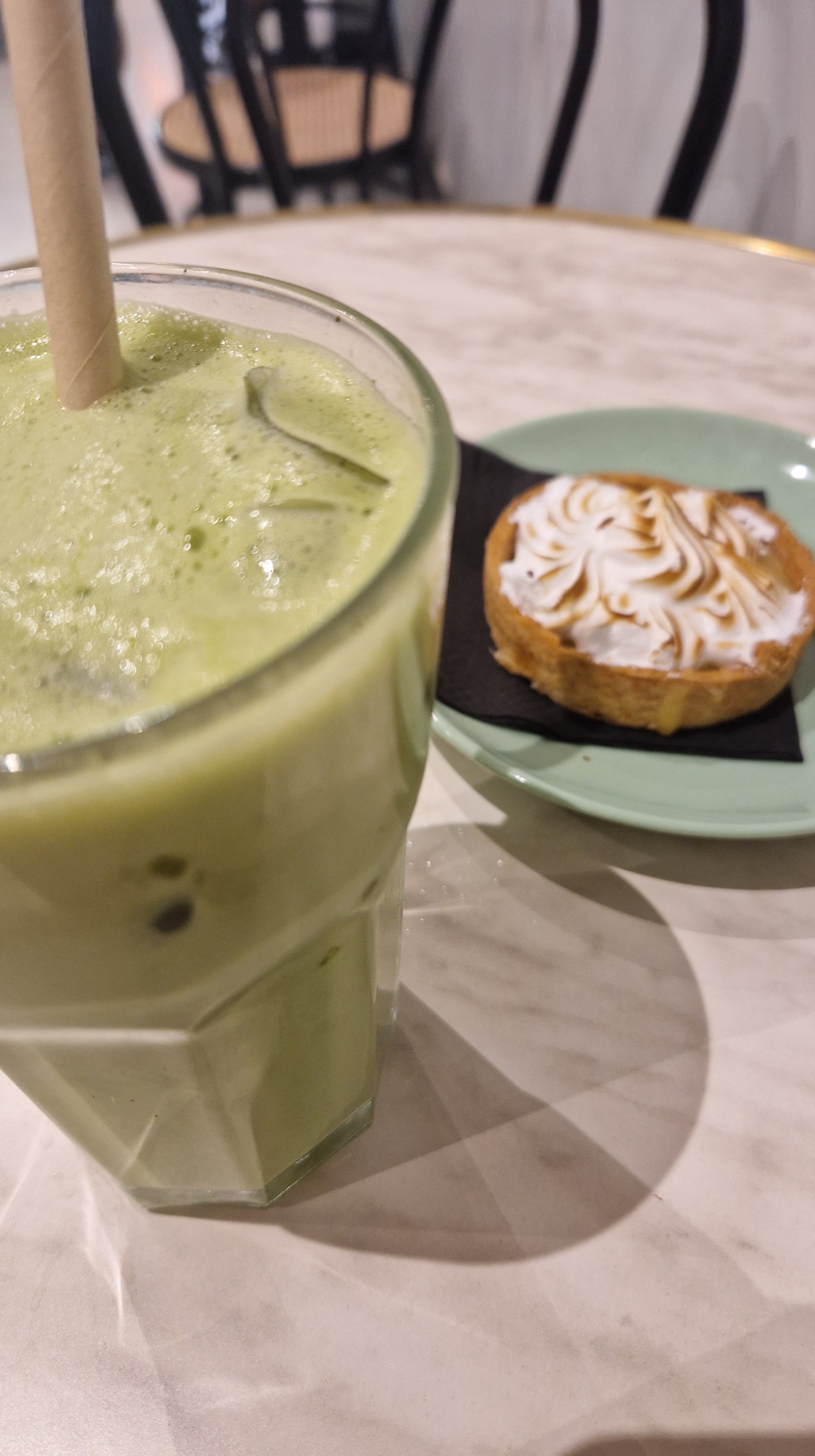 Mon petit +: leur iced matcha avec un cinnamon roll sont à tomber !